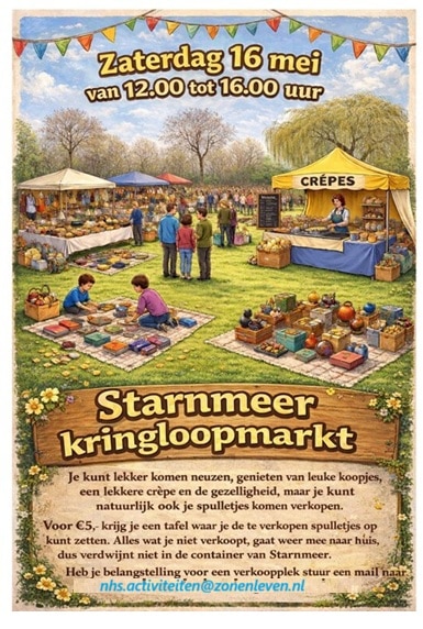 Voor €5,- krijg je een tafel waar je de te verkopen spulletjes  op kunt zetten. Alles wat je niet verkoopt, gaat weer mee naar huis, dus verdwijnt niet is de container van Starnmeer.